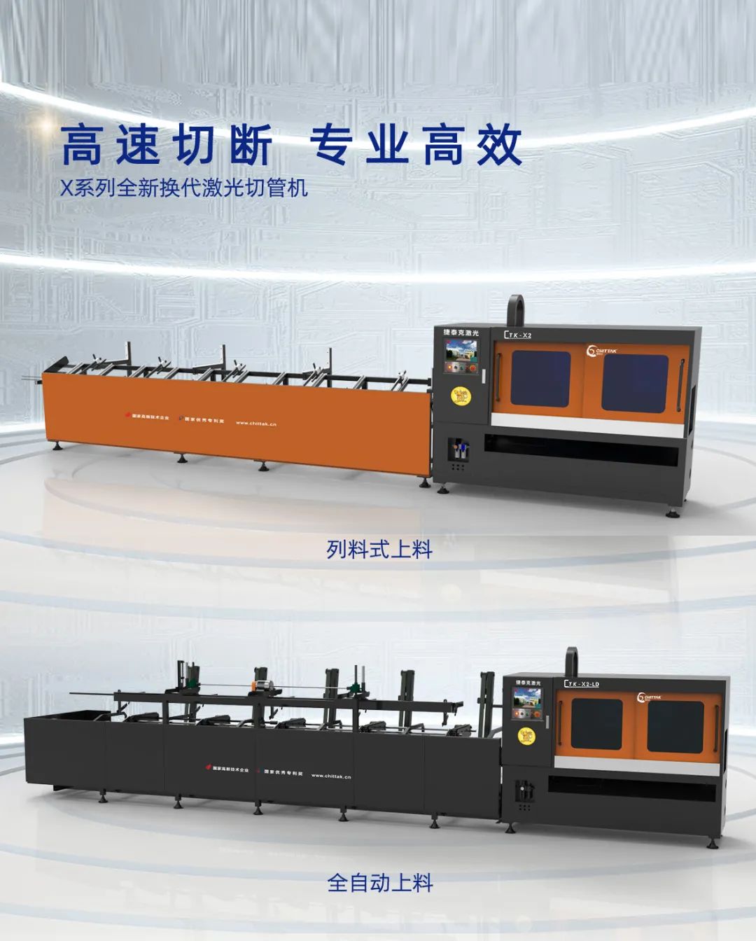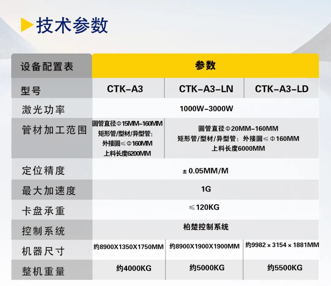本案例中所采用的激光切管機有:CTK-A3全能型3D激光切管機以及CTK-X2圓管專用高速激光切管機